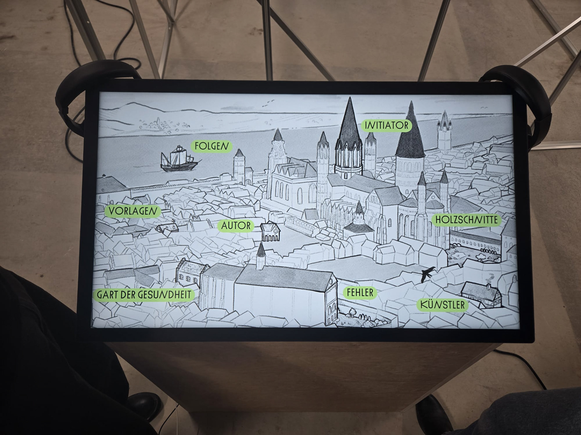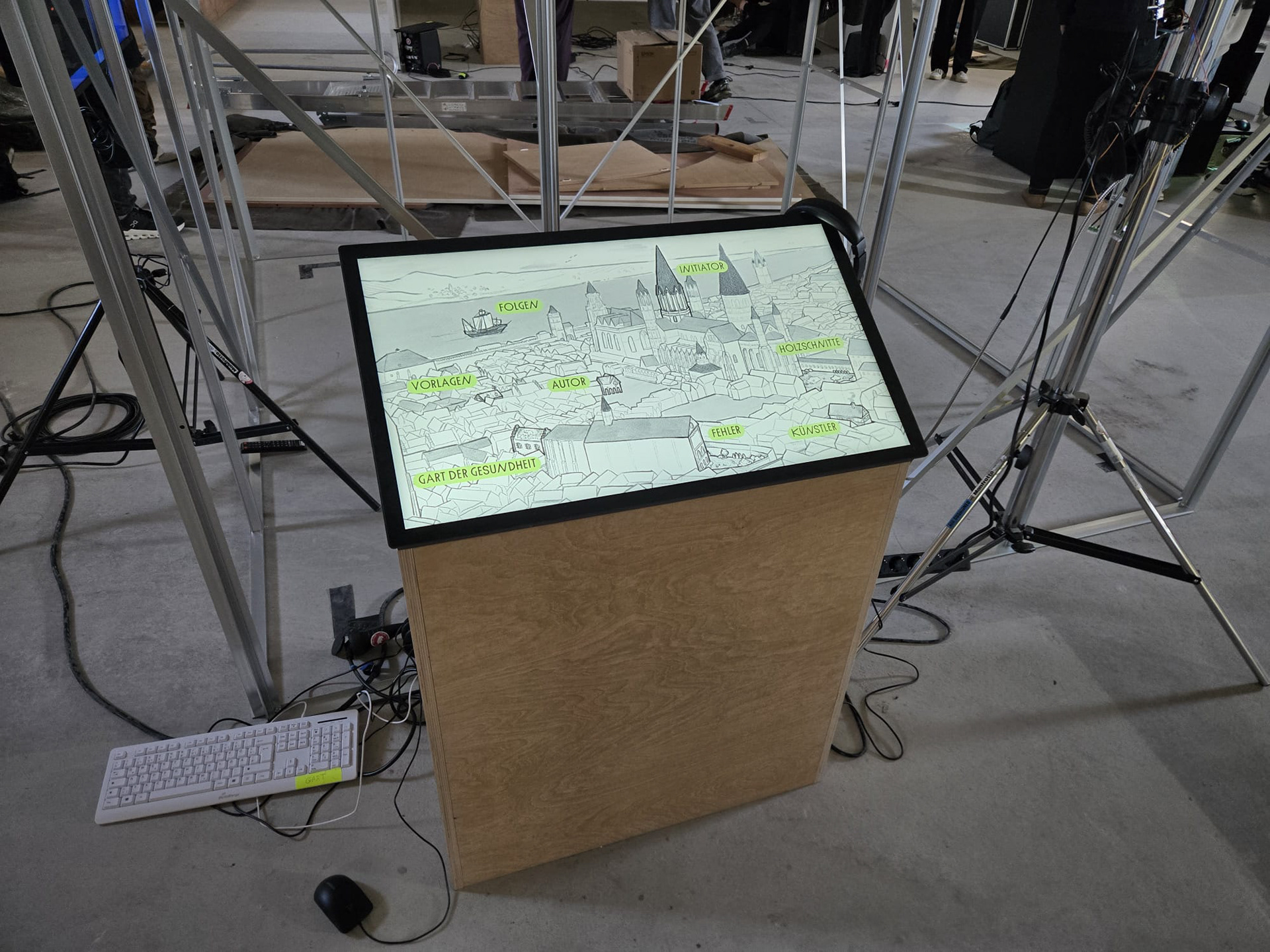 Ich bin für die Programmierung des Touchtable-Interfaces verantwortlich. Die konzeptionelle Idee und die Animationen stammen von Nina Baumhoff.